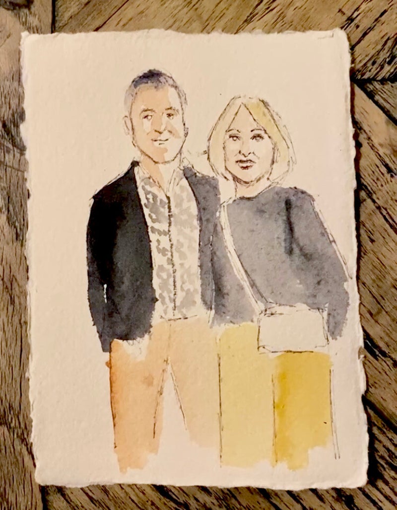 As I paint my live guest paintings in watercolour, they dry quickly and are ready for guests to take away in only 10-15 minutes. Some guests love to watch the painting process and watch as I paint at my easel, and others like for their painting to be a surprise!